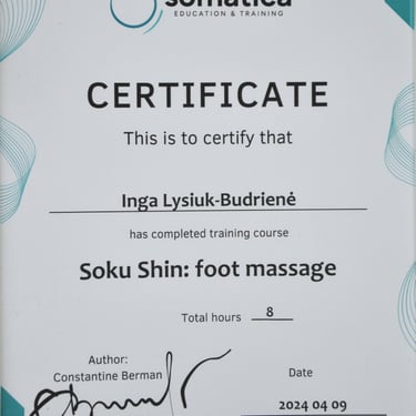 2024m. - Soku Shin: pėdų masažo mokymų kursas. (Lektorius Constantine Berman, Somatica ir Beauty Prof)