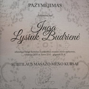 2025m. - Subtilaus masažo meno kursai. (Vadovas Valdas Velavičius)
